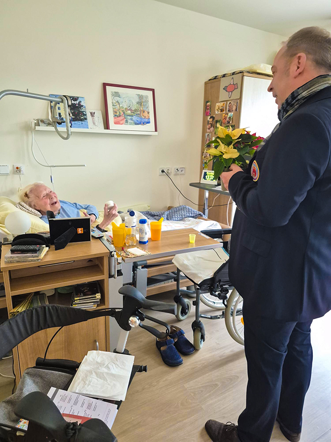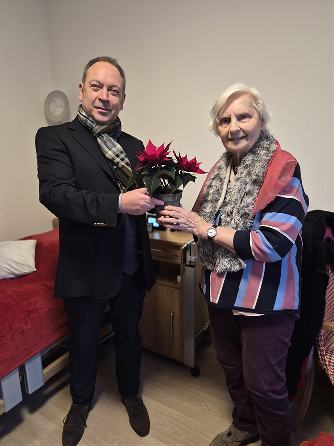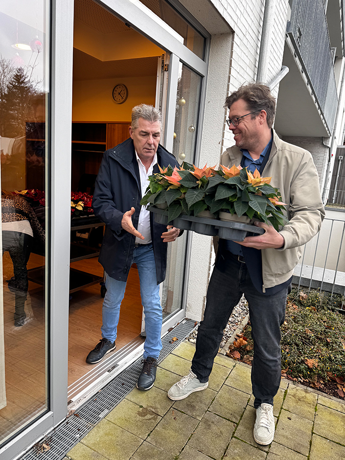 „Einen schönen dritten Advent!“, rief Stefan Szemkus, 2. Vorsitzender unseres gemeinnützigen Vereins, als er einer Bewohnerin einen der ersten Sterne überreichte. Die Dame hält die Pflanze vorsichtig in den Händen und sagt leise: „Vielen, vielen Dank.“ Solche Augenblicke sind es, die unsere Aktion Jahr für Jahr so besonders machen.